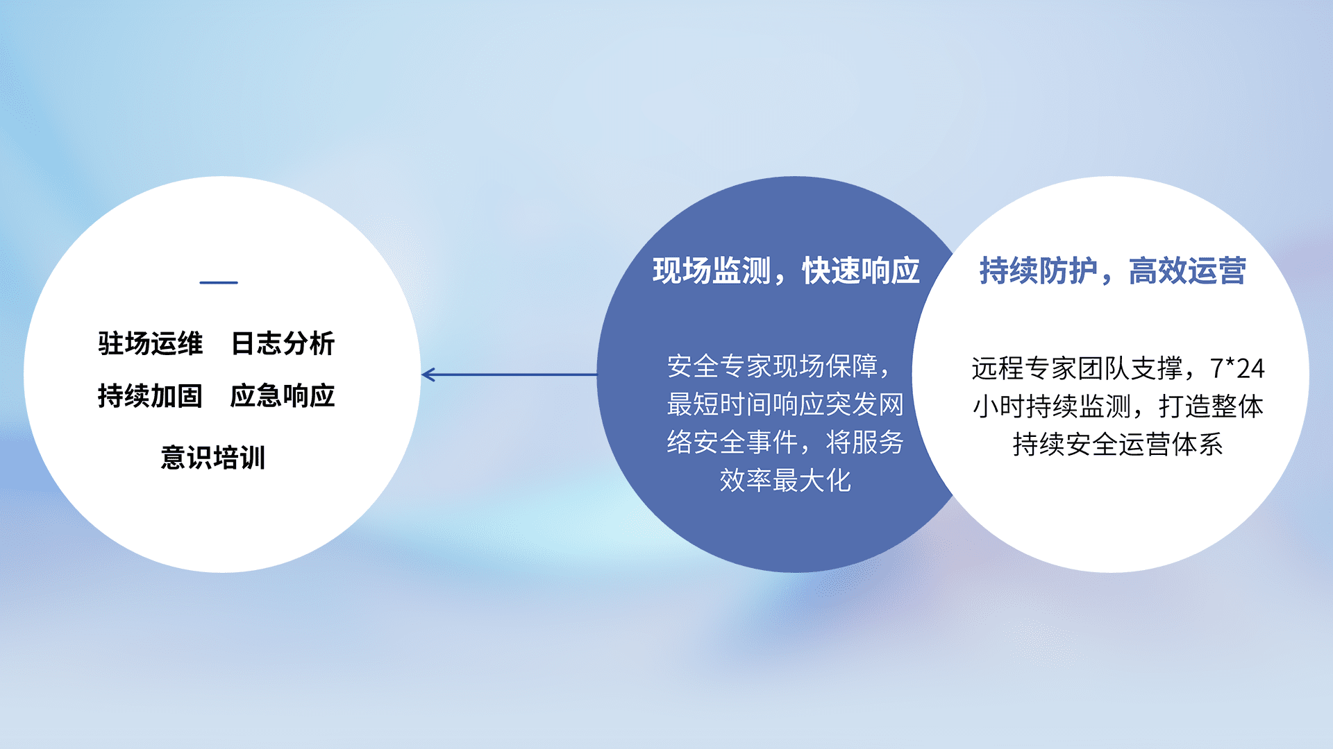 7X24小时持续监测安全事件,保持安全策略有效性,降低资产脆弱性风险,,精准拦截黑客攻击,,,减少被黑客利用的机会,,,第一时间遏制,,,,降低损失。。。。